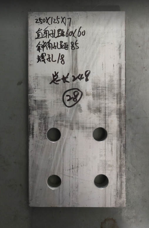 铝 接线掌 总长248 掌长250 掌宽125 掌厚17 孔数4 孔径φ18 邻边孔距60*60 对角孔距85 线夹长度无 线管内径无 抱箍厚度无 有图纸 内部编号28