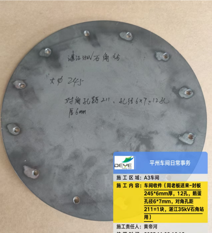 加工件 封板245*6mm厚,12孔,鹅蛋孔径6*7mm,对角孔距211mm 湛江35kV石角站用)